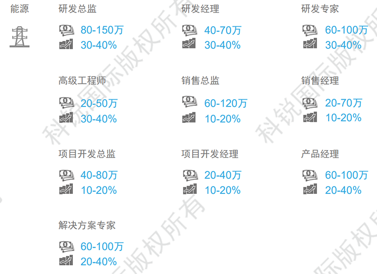 薪酬趋势:行业整体薪酬趋稳,自然涨幅在8-12%,跳槽涨幅在20-30%。能源互联网领域资深人才紧缺,部分职位薪资涨幅可达50%,甚至更高(文中部分数据是猎头公司球盟会(中国)国际专家顾问的分析预测,供企业和猎头招聘参考)